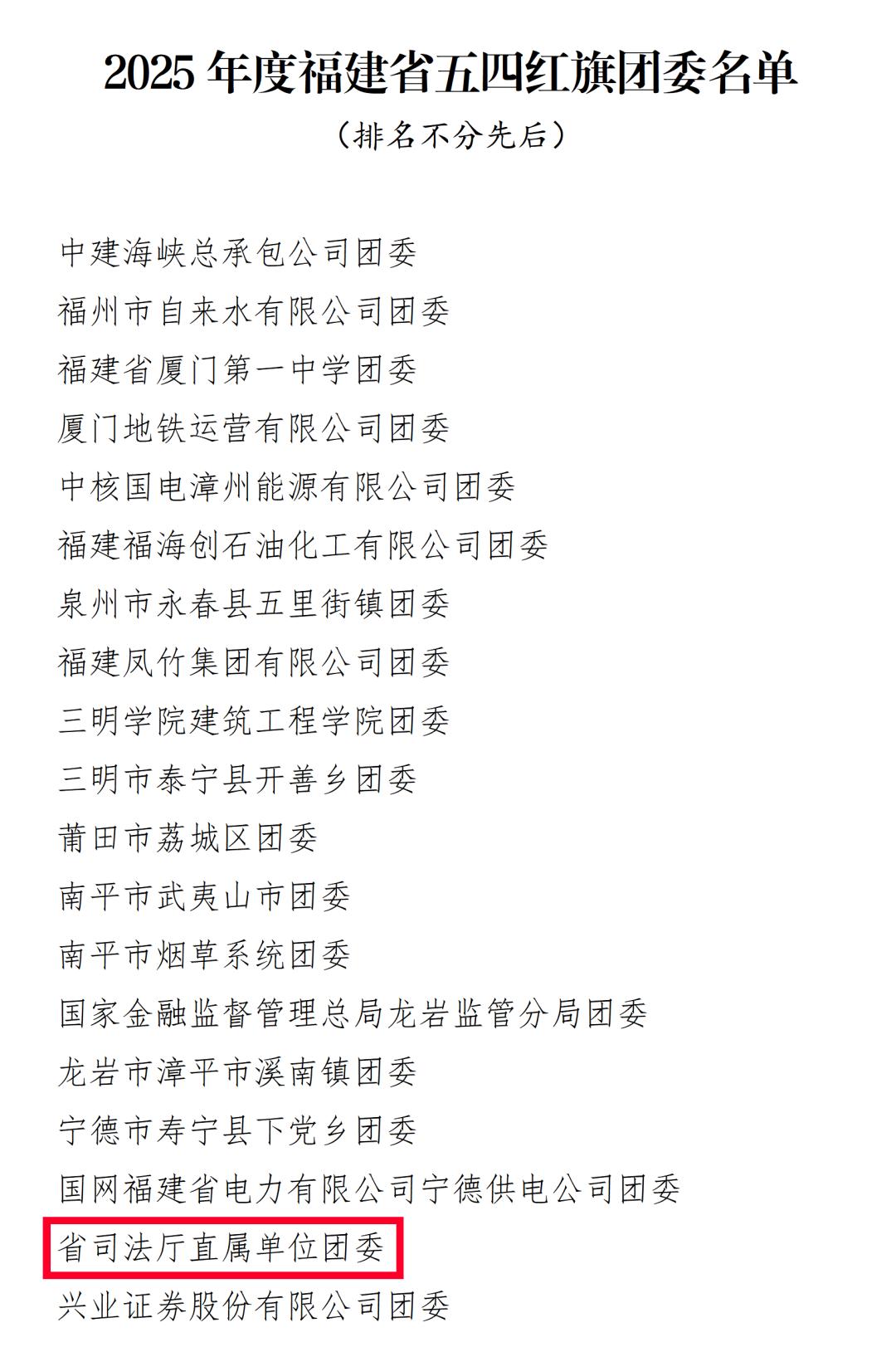 喜报!省司法厅直属单位团委获“福建省五四红旗团委”称号