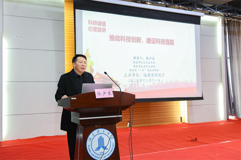 12月11日,省科技厅组织宣讲团赴福建理工大学开展科研诚信政策宣讲进校园活动,邀请福建师范大学法学院林少东副教授担任宣讲会主讲。