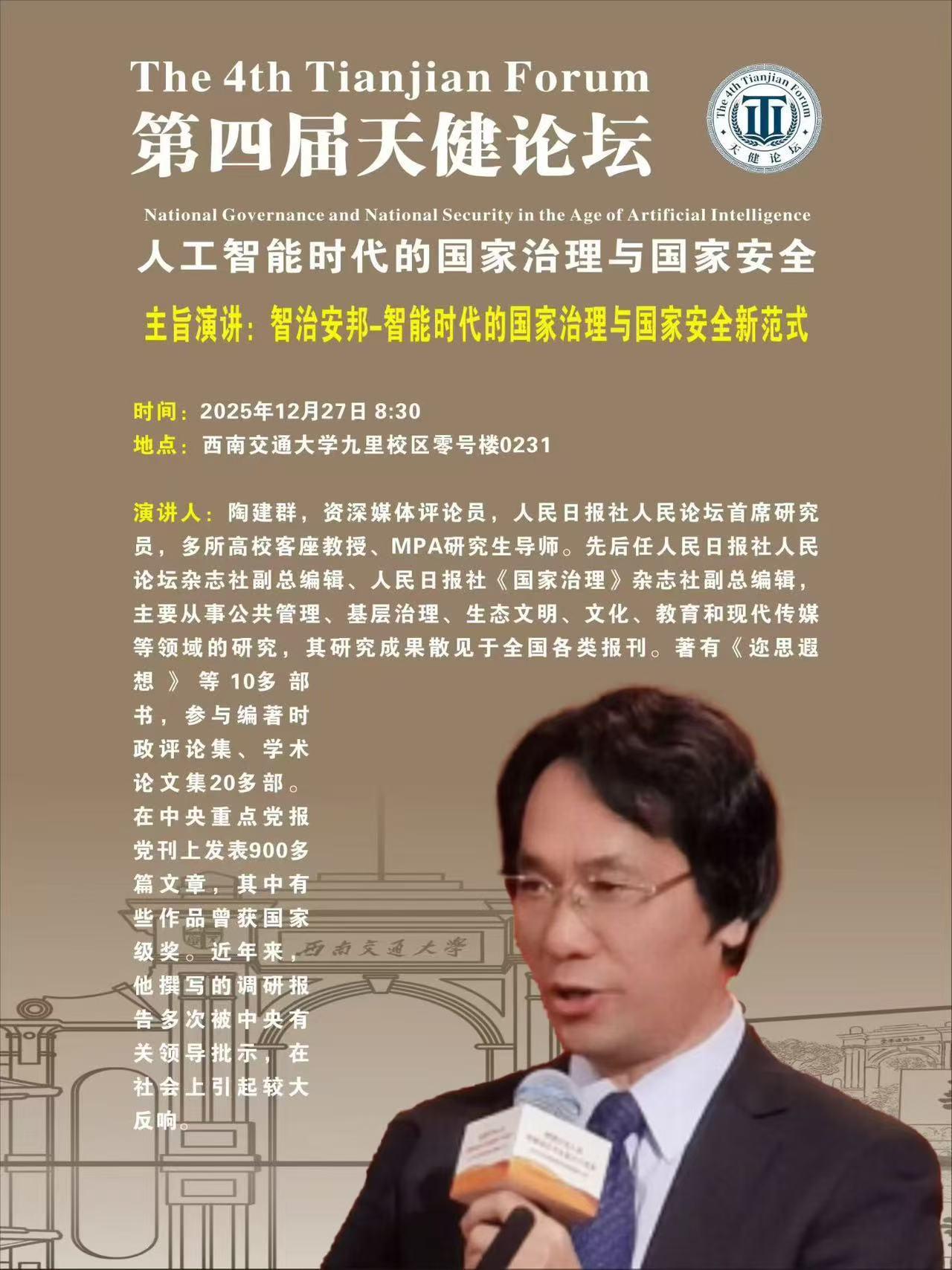诗集《缠绵远方》作者陶建群西南交通大学演讲海报(孟江波/供图)