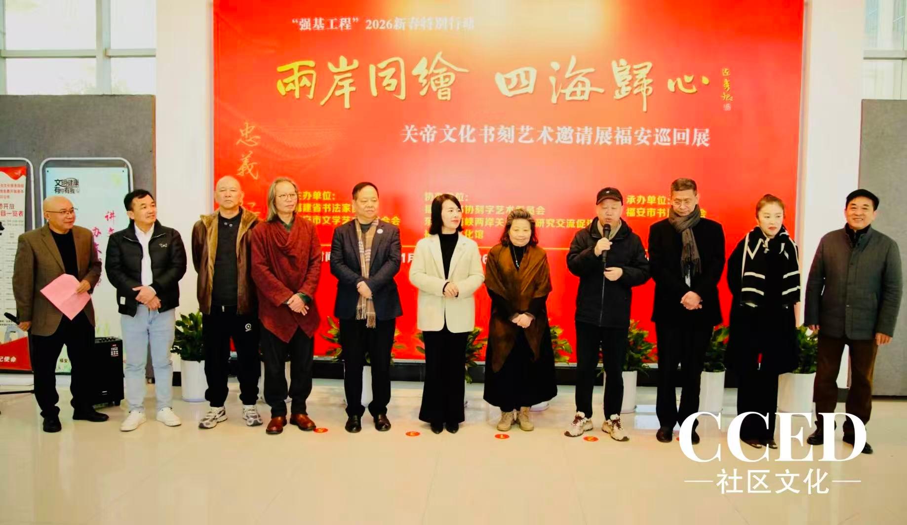 “两岸同绘 四海归心”——汉字书刻艺术邀请展于1月8日上午在福安市文化馆开幕。本次展览由福建省书法家协会、福安市文学艺术界联合会主办,福安市书法家协会承办,旨在以汉字书刻艺术为纽带,弘扬中华优秀传统文化,促进两岸人文交流与心灵契合。